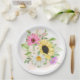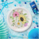 Cette assiette en papier est présentée en blanc avec une jolie impression florale.