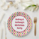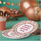 Ajoutez votre propre message personnalisé à ces plaques en papier qui sont parfaites pour toutes vos fêtes de vacances. Elles présentent une motif géométrique de style rétro dans les années 1970 aux couleurs de Noël rouge, vert foncé, vert citron, rose et orange. Votre texte est en caractères rouges gras au centre.