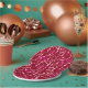 Une cascade de notes musicales rose fushia, rose pâle, beige et crème sur un arrière - plan de vin bordeaux profond