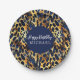 Assiettes en papier inspirées du safari avec des motifs de fourrure d'animaux en or et bleu marine.