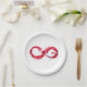 Infinity symbole of continuous stream of red pouring into glass glass glass on white background.