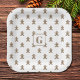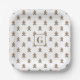 Ideal to use as food trays in lieu of guest plates during all the holiday months. A pattern of cute iced gingerbread man cookies decorates this 7" square paper plate. Easily change the bold initial to make it yours using the Template provided. Also available in 9" square, two round sizes and a bowl. Sold in sets of 8 and printed on durable paper stock. Made in U.S.A.