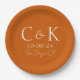 Assiettes En Carton Initiales Monogrammes sur Mariage orange brûlé