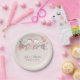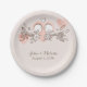 Une jolie plaque à papier appropriée à beaucoup d'occasions et personnalisable avec des noms ou des dates. Deux oiseaux se reposent sur des branches d'arbre avec des coeurs et des fleurs sur l'arrière - plan de pêche.