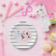 Une fête d'halloween pas éffrayante ! Pastel rose Hey Boo Iridescente Ghost Halloween Plaques de fête d'anniversaire avec arrière - plan rayé noir et blanc.