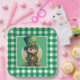 Une Belle Plaque De Papier Carré Verte En vichy Avec Gnome Irlandais Adorable Pour La Saint Patrick's Day