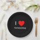 Assiettes En Carton J'aime Natation Typographie & Coeur Rouge Noir