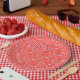 Assiettes En Carton Japon Vague Seigaiha Motif rose rouge