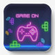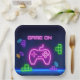 Jeu sur la plaque de papier du joueur vidéo néon rose, vert, bleu, violet.