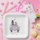 Un jeune couple marié qui s'en va en voiture après le mariage. Ce design est vraiment efficace sur ces assiettes en papier