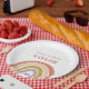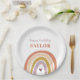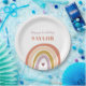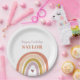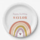 Cute Boho Rainbow Peach Blush Birthday Paper Plates présente un adorable duo d'arc-en-ciel dans les tons rose, blush, moutarde, aqua et marine, ainsi que la calligraphie moderne.