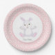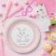 Assiettes En Carton Joli lapin d'anniversaire & Fleurs sur rose clair