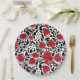 Assiettes En Carton Joli motif floral en rouge, noir et blanc