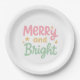 Plaques de papier moderne de Noël avec un design mignon et amusant avec "Joyeux et brillant" dans joyeux rose pastel et vert décontracté lettrage.
