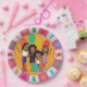 Les filles de JOOLS TV sont là pour vous célébrer ! Ces plaques de papier rond présentent Leia, Ava, Aurie & Aris en train de poser sur un arrière - plan rose.