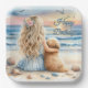 Assiettes En Carton Joyeuse fille d'anniversaire avec chiot sur la pla
