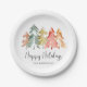 Assiettes En Carton Joyeuses vacances Pine Tree Aquarelle Noël