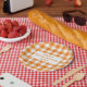 Assiettes En Carton Joyeux Amical Orange Blanc En vichy Plaid
