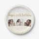 Célébrez un grand anniversaire avec ces plaques de papier amusantes avec 3 photos de la fille/garçon d'anniversaire, 2 titres de texte personnalisés, le tout mis contre un arrière - plan blanc accentué avec des étincelles de parties scintillant faux or. Amusant et festif - parfait pour toute célébration d'anniversaire.