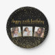 Célébrez un grand anniversaire avec ces plaques de papier amusantes avec 3 photos de la fille/garçon d'anniversaire, 2 titres de texte personnalisés, le tout mis contre un arrière - plan noir accentué avec des étincelles de parties scintillant faux or. Amusant et festif - parfait pour toute célébration d'anniversaire.