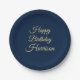 Joyeux Anniversaire marine bleu or script personnalisé nom élégant partie Papier Plaques