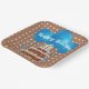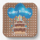 Une Plaque De Papier Potté Polka Brown Avec Gâteau Au Chocolat Et Ballons Bleus