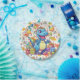 Une Plate Ronde Papier Dinosaure D'Anniversaire Jolie Conçue Avec Ballons, Dinosaures Colorés