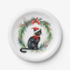 Assiettes En Carton Joyeux Noël aquarelle Chat noir et couronne