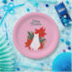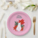 Joyeux Noël Floral Chat assiettes en papier avec un chat mignon et fleurs saisonnières.