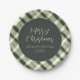 Assiettes En Carton Joyeux Noël Olive Green Plaid Script Rustique