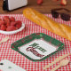Une belle plaque en papier de Noël avec un style vintage "Joyeux Noël" et une bordure en plastique vert de Noël aux accents saints. Idéal pour les tables de vacances ou les repas de salon de séjour.