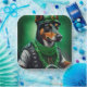 Un ami en fureur derrière les guidons d'une moto verte brillante, portant une tenue verte de la Saint Patrick qui fait tourner la tête. Le chien est habillé d'un ensemble festif, avec une cravate arc-en-ciel verte et un chapeau haut assorti qui se trouve doucement au-dessus de la tête. Le costume présente des motifs complexes de shamrocks et de leprechauns, ce qui indique clairement que ce chien est prêt à célébrer la Saint Patrick avec style.