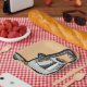 Une bouilloire brillante contre un arrière - plan orange. Ce design semble vraiment efficace sur ces Plaques de Papier