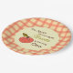 Fêtez le grand jour de votre petit avec cette adorable plaque de papier de premier anniversaire! Doté d'une douce clipart de pomme souriante, d'un arrière - plan plaid rouge ludique, et de l'expression "la pomme de nos yeux en tourne un", ce design est le parfait mélange de mignon et rustique. Idéal pour les fêtes d'anniversaire d'automne ou de ferme, les fêtes de verger de pommiers ou les réunions familiales confortables. Personnalisez facilement le nom et l’âge de votre enfant. Une façon charmante pour les amis et la famille invitations de célébrer l’anniversaire de votre bébé!
