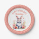 Un petit lapin lapin doux entouré de fleurs roses et coralliennes aquarelle illustration personnalisées plaques de papier fête d'anniversaire pour une petite fille.