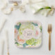 De magnifiques lavis de fleurs d'hortensia blancs et verts, de roses roses et crème, de marguerites, de petites fleurs et de feuilles sur fond rose pâle, personnalisez ces assiettes en papier carrées pour votre mariage, fête de fiançailles, mariage ou toute occasion avec vos détails en lettrage chic. ARTICLES CORRESPONDANTS dans notre collection.