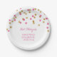 Le bat mitzvah personnalisable de nom et de date party des plats dans le motif fuchsia élégant de confettis de roses indien et d'or. (Notez svp le motif de confettis est copie seulement.)