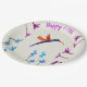 Plaques à papier avec un colibri volant librement entre les fleurs. Grand pour un anniversaire ou un anniversaire d'étape importante, le texte est facilement customisé pour votre occasion. Ces plats floraux de colibri ont été conçus utilisant une illustration de ma peinture en verre d'oiseau original. potier de ©Annabel