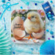 Un poussin jaune moelleux éclos d'un oeuf entouré de fleurs printanières vives et de décorations festives de Pâques. Cette charmante scène célèbre la joie et le renouveau de la saison de Pâques.
