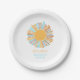 Plaques de papier personnalisées. Conçu avec un soleil boho rétro dans un jaune orangé avec soleil bleu clair. Parcourez notre thème de soleil bohème pour apparier papeterie et articles de fête. Serviettes, invitations, cartes de remerciement, baby shower .jeux et plus