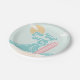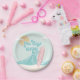 Le Grand ! Plage de surf 1er Anniversaire assiettes de fête avec vagues turquoise et plateau de surf rose.