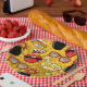 Ajoutez votre propre nom ou autre texte pour customiser cette amusante plaque de papier rétro motif de bombes, lèvres, bulles de discours et lunettes de soleil dans les tons lumineux de rouge et d'or. Le texte du motif dit déjà 'WTF' et 'Boom'. Recherchez ID553 pour voir d'autres produits avec cette conception.