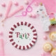 Festive and fun, this retro stylish holiday party plate looks as though it is right out of Santa's workshop at the North Pole. Whimsical and playful, the typography spells out Party in bright red and green. A candy cane red and white stripes pattern around the outer edge adds a pop of whimsical festivity and retro style. These plates are available in 2 sizes; shown here in the smaller 7-inch diameter size, they are also available in a 9-inch diameter size.