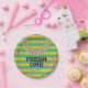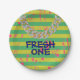 Hip hop The Fresh One Party assiette C'est l'invitation la plus cool pour vos petits 1er anniversaire fête. arrière - plan cool assorti au fameux t-shirt de Belair avec plaque de peinture rose chaud qui capture totalement les années 90.