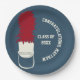 Créez des fournitures personnalisées pour les fêtes de fin d'études et d'autres événements spéciaux. Ces plaques en papier sont parfaites pour les membres de la bande de marche et sont illustrées par une simple illustration d'un casquette de la bande de marche avec des plumes sur le dessus en crème ou en ivoire et en rouge foncé, dressées contre un arrière - plan bleu marine. Votre texte apparaît en caractères gras crème.