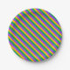 Assiettes En Carton Mardi Gras Gras Stripes Motif jaune violet vert