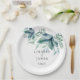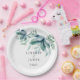 Cette plaque en papier design mariage est présentée avec un imprimé d'art de la vigne d'eucalyptus. Customisez cet élément et modifiez l'exemple de texte sur le vôtre. Image sous licence