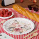 Aquarelle rose florale avec feuilles de feuillage doré et un cercle géométrique d'alcool rose. Les invitations correspondantes et les fournitures de fête sont disponibles dans cette suite de collecte.