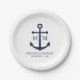 Ajoutez une touche élégante à votre mariage nautique avec cette plaque classique marine bleue ancre mariage papier. Conçu avec une illustration d'ancre bleu marine, il présente un monogramme personnalisé de mariée et de mariée, le nom et la date du mariage dans une police serif bleu marine sur un arrière - plan blanc. Parfait pour les mariages nautiques, les mariages sur la plage et plus.