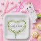 Coeur nuptiale blanche avec des noms de mariés et mariés sur du bois blanc. Les noms sont modifiables.